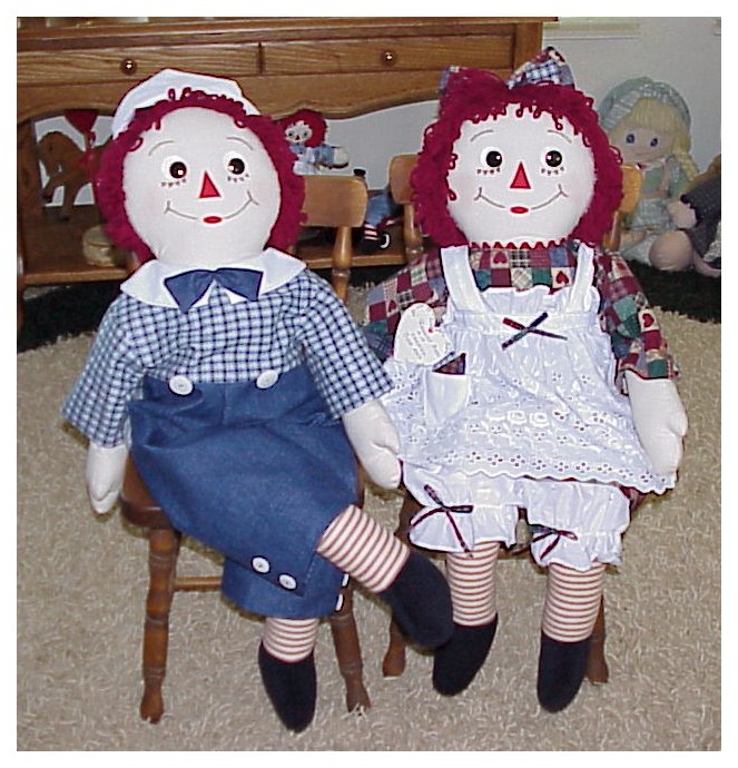 Here you will see a few of the 36" Raggedies I have made and get an idea of how you would like YOUR SPECIAL RAGGEDIES to look!