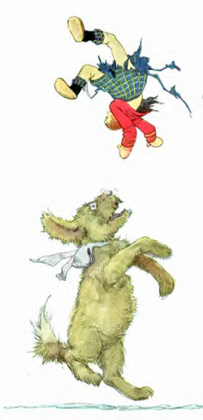 In this same storybook.....Marcella's dog Fritzie gets ahold of Uncle Clem and ruins his kiltie and causes him to lose much of his stuffing....