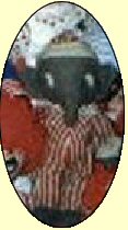 Eddie's Mama made him a bright new Birthday outfit with matching hat.... (notice his green/white checked "bum" cover???)