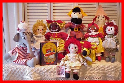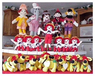 I think you will agree that the variety of character dolls I offer ….make for great conversation pieces and add a touch of “Variety” to your Raggedy Collections……..and can fill a spot until you are lucky enough to afford an “original” to take it’s place!!.