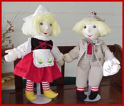 Henny the Dutch Doll character was first introduced, by Gruelle, in his book, My Very Own Fairy Stories" along with several other popular characters. Although many were made into dolls as tie-ins to the release of a new book, Gruelle, to my knowledge, never commissioned these adorable Dutch brother and sister to be made into dolls. I simply fell in love with these two little characters and deemed it my duty and honor, to preserve them in the form of a Character Doll...... Evidently, others share my philosophy..........for they are by far, the most popular of my Raggedy Character Dolls!