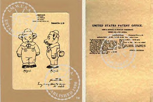 Gruelle and/or his family members provided Ross & Ross with homemade prototypes and they began their production of these character dolls in 1921 with a 12 inch plush Little Brown Bear doll. Sunny Bunny came next in 1922, he was also a 12 inch plush doll and was followed later in 1922 by an Eddie Elephant doll, which measured 14 inches and was made with a combination of cloth and felt. The dolls had kapok stuffing and each had sewn on clothing with a cloth tag stating their "individual" patented name.