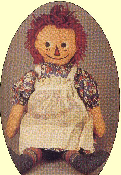 In late 1934, Mollye decided to add cloth dolls to her product line, and she started with the already well-known Raggedy Ann & Andy dolls, because she was aware that Volland would no longer be producing them, and the retailers would be looking for a new source for the dolls. Johnny Gruelle had authorized The Exposition Doll & Toy Mfg. company to create the dolls, when Paul Volland died unexpectedly. Mollye knew that her company was more well-known than Exposition, and she used her influence with the retailers to put her dolls in their stores, rather than Expositions. A lawsuit with Gruelle resulted and when it was settled in Gruelle's favor in December of 1937, production was halted. Mollye claimed to have added Beloved Belindy to her line of Raggedy dolls as well, however, only a proto-type has been documented. Click to Learn about Molly-'Es Beloved Belindy Mollye was a gifted designer, and many of her innovative ideas for her unique style of Raggedies, are still being used by today's manufactures of Raggedies. Her design is responsible for the construction of their "wigs" that are still used today, and for the painted heart on Ann and Andy's