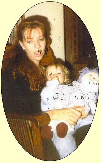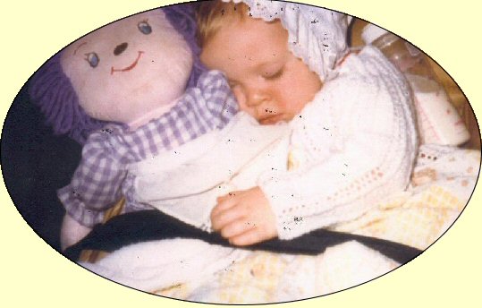 He told how the doll and little girl had been inseparable, and after the doll became fragile from so much loving and kissing.......he was afraid to wash it, for fear it would fall apart. He had often taped her back together with duct tape, and had to redraw certain facial features back on, that were washed away with tears and kisses.